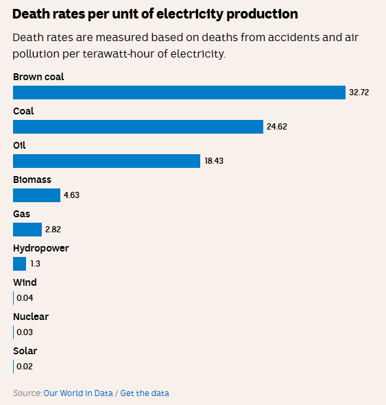 It’s impossible to talk about nuclear energy without mentioning safety considerations. By one measure – how many people die per unit of electricity generated – it’s remarkably safe.