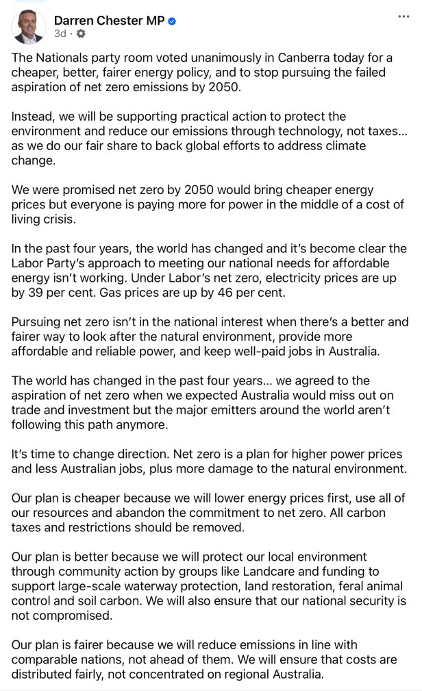As a special treat we have also included an opinion piece from Darren Chester dated in 2021 when he expressed much more sensible ideas on climate action than he does in 2025.